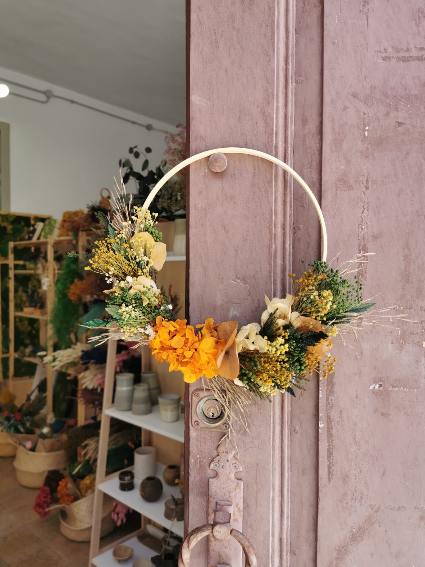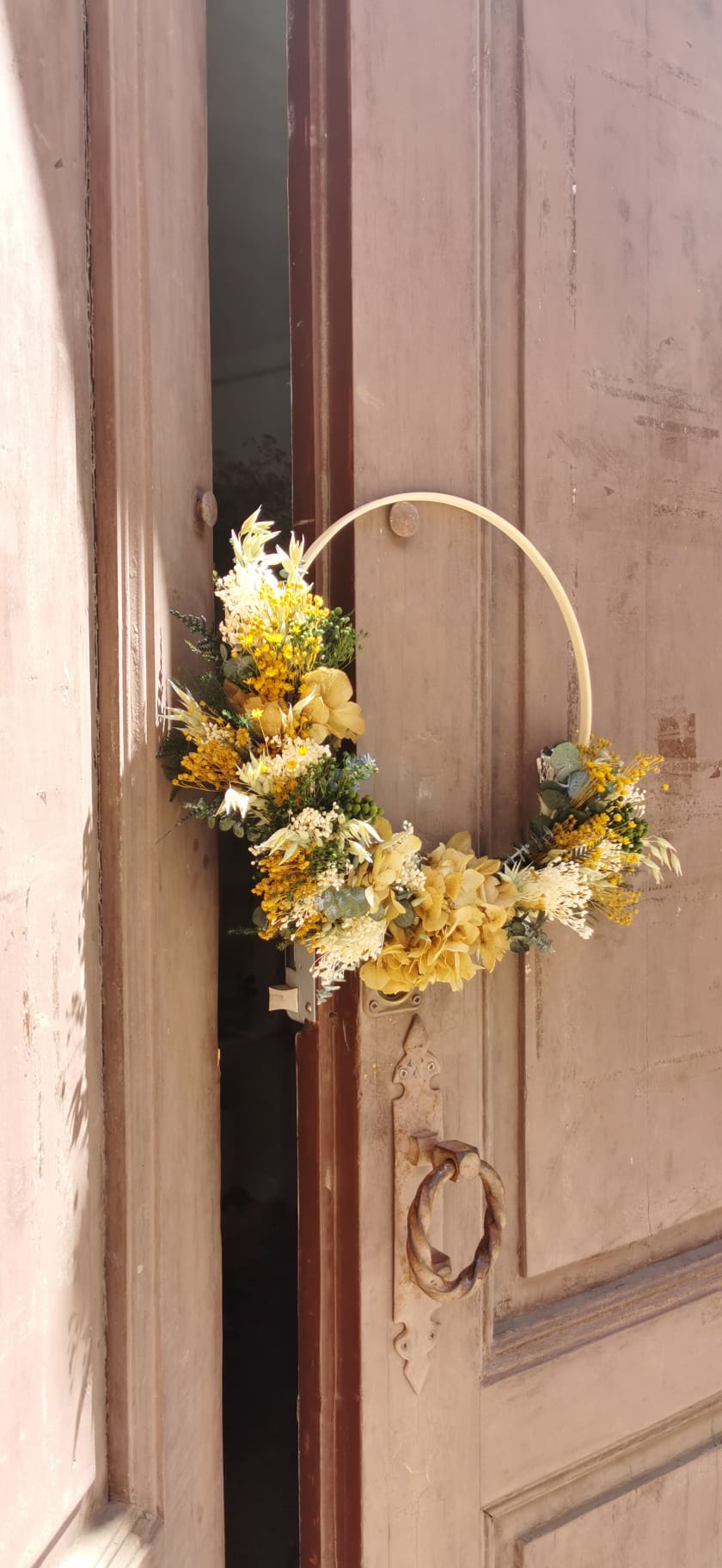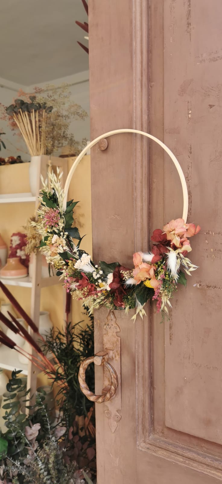 - Si eliges hacer Swing será en un bastidor de 26cm. Y si eliges el camino de mesa será sobre una rama de eucalipto de unos 40cm