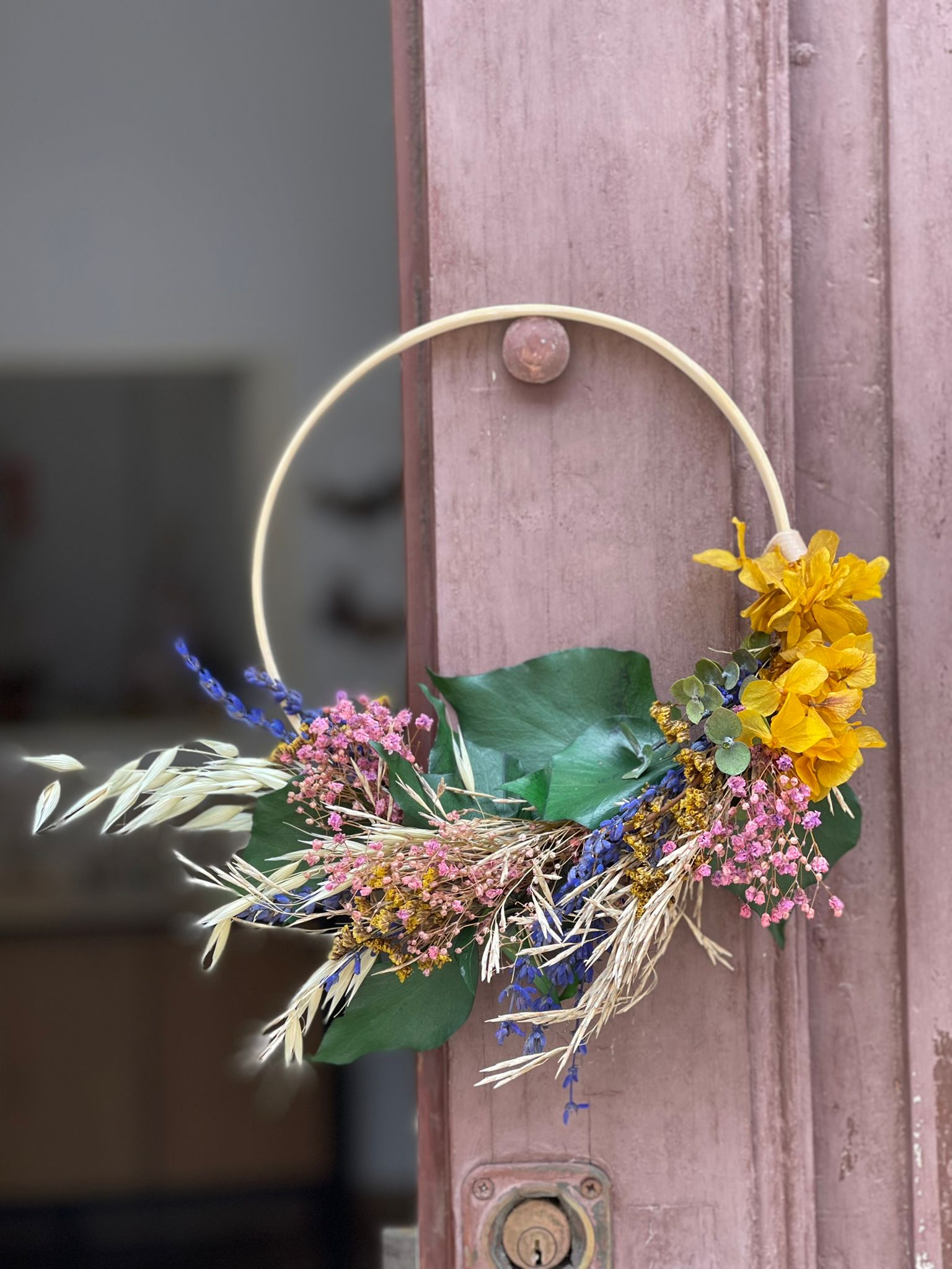 - Elegirás la gama cromática que más vaya con tu estilo para realizar un ramo tipo silvestre con muchas flores pequeñas, y cereales.